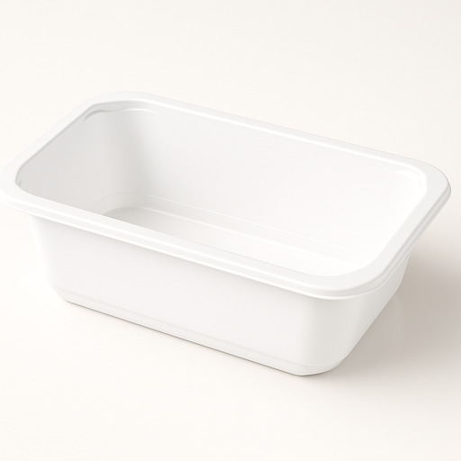 Contenitore versatile adatto al microonde. Utilizzabile con coperchio o piastra di saldatura. In PP, 100% riciclabile.